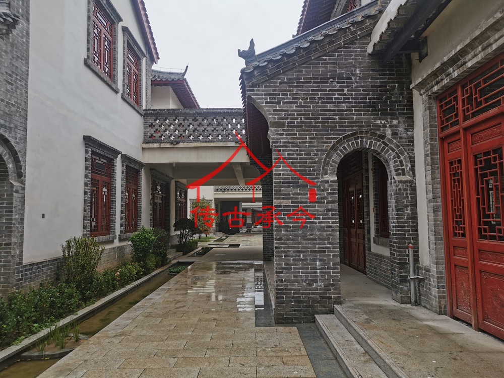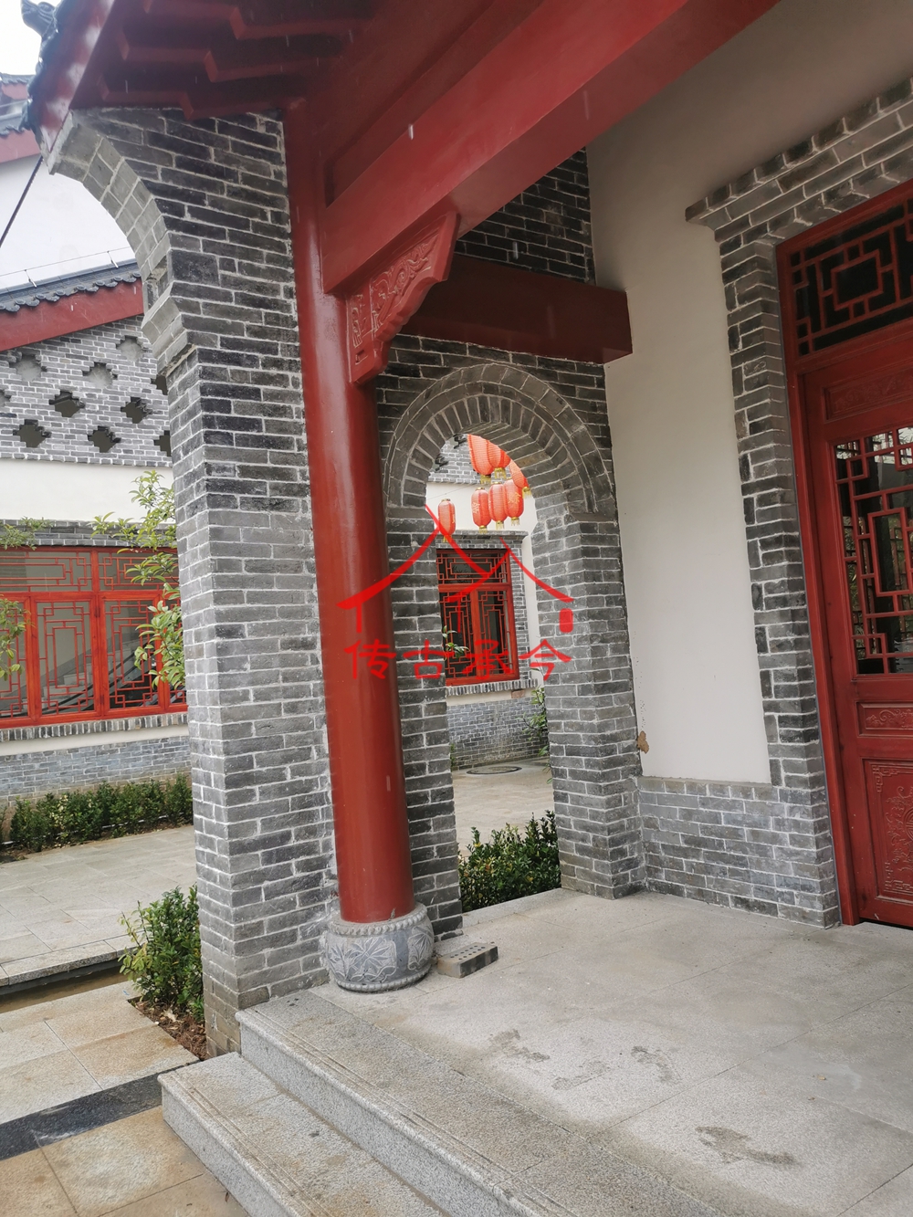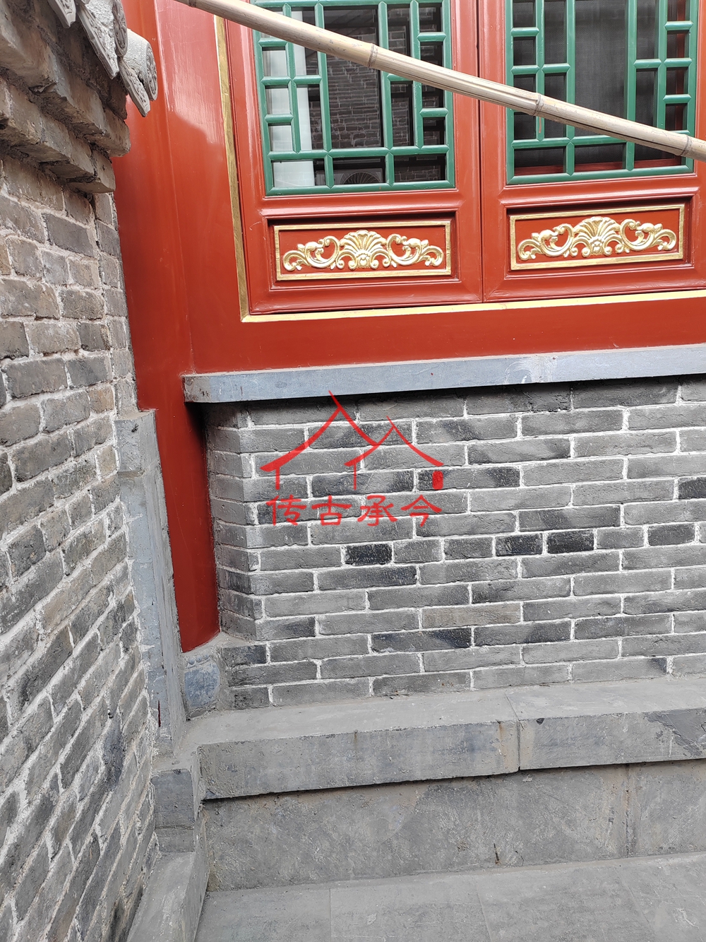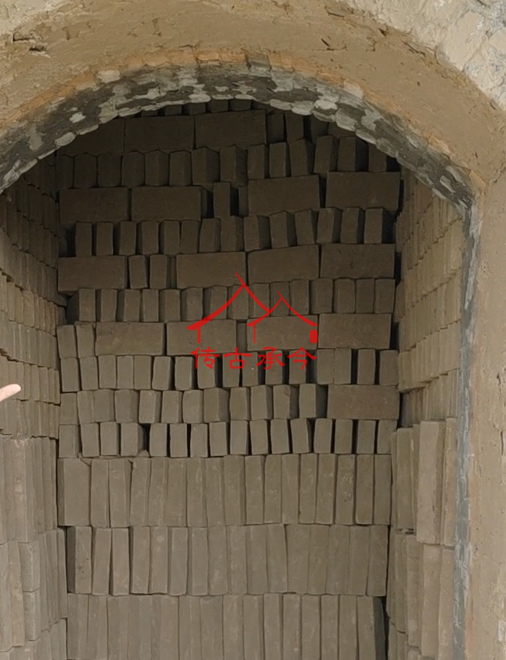 古法手工制作青砖,所有工艺流程全部人工操作。上选优质粘土,凉晒、翻搅,去暴质、增柔性,再经筛选;用中性水和泥、练泥、打浆,置稠泥于框中,着铁线弓戛平其面而成坯型,存阴棚内,日日转筑,阴7日后,用木板将坯面压平、压实,移至亭子间花架码放,自然阴干;然后装窑、烘干,在窑内经一个月左右不同火力焙烧,再窨水,前后十几道工序而后出窑。