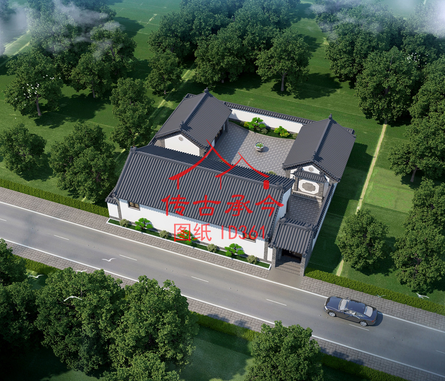 编号010:12.8*30.2米一层四合院全套施工图纸 自建房图纸 提供材料及技术支持