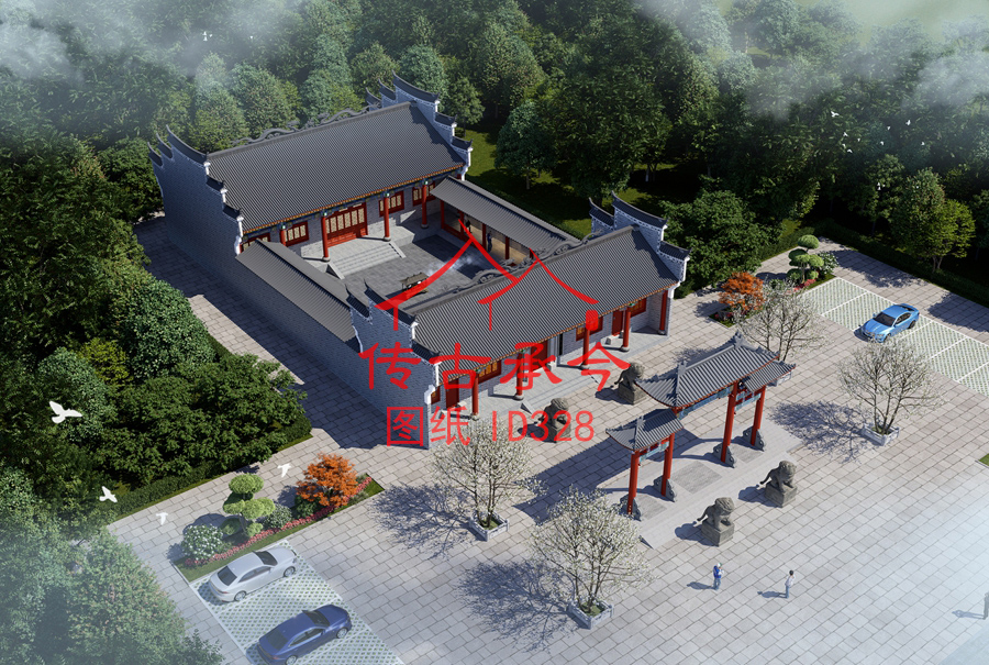 编号031:28.6*28.6米一进一层四合院 自建房图纸 提供材料及技术支持