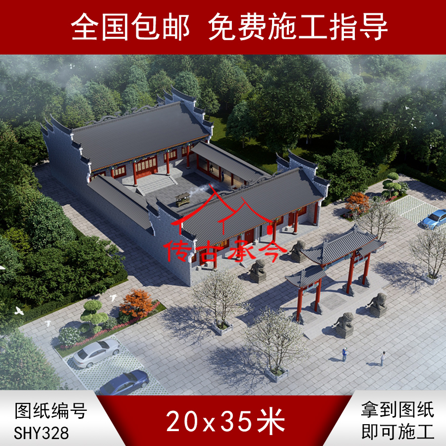 编号328:20*35米四合院全套施工图纸设计图纸 自建房图纸 提供材料及技术支持