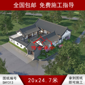 编号313:20*24.7米四合院全套施工图纸设计图纸 自建房图纸 提供材料及技术支持