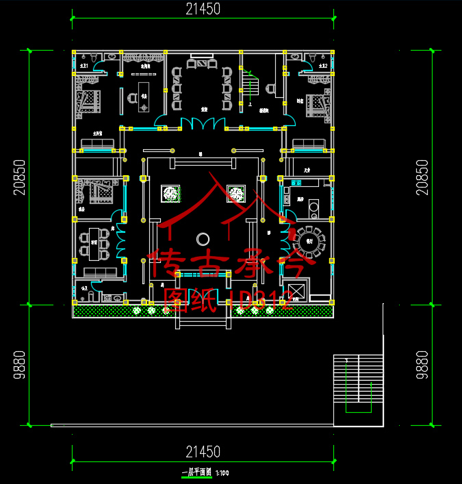 编号312:21.4*30.8米四合院全套施工图纸设计图纸 自建房图纸 提供材料及技术支持
