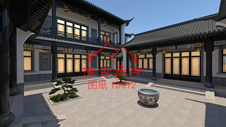 编号312:21.4*30.8米四合院全套施工图纸设计图纸 自建房图纸 提供材料及技术支持