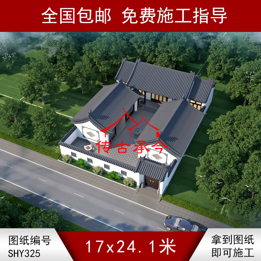 编号325:17*24.1米四合院全套施工图纸设计图纸 自建房图纸 提供材料及技术支持