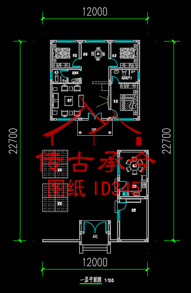 编号345:12*22.7米四合院全套施工图纸设计图纸 自建房图纸 提供材料及技术支持