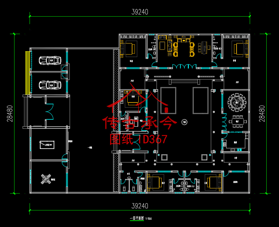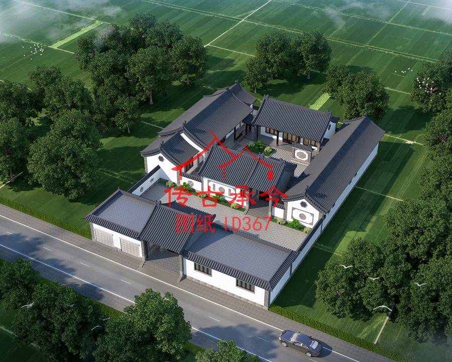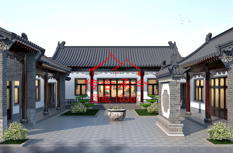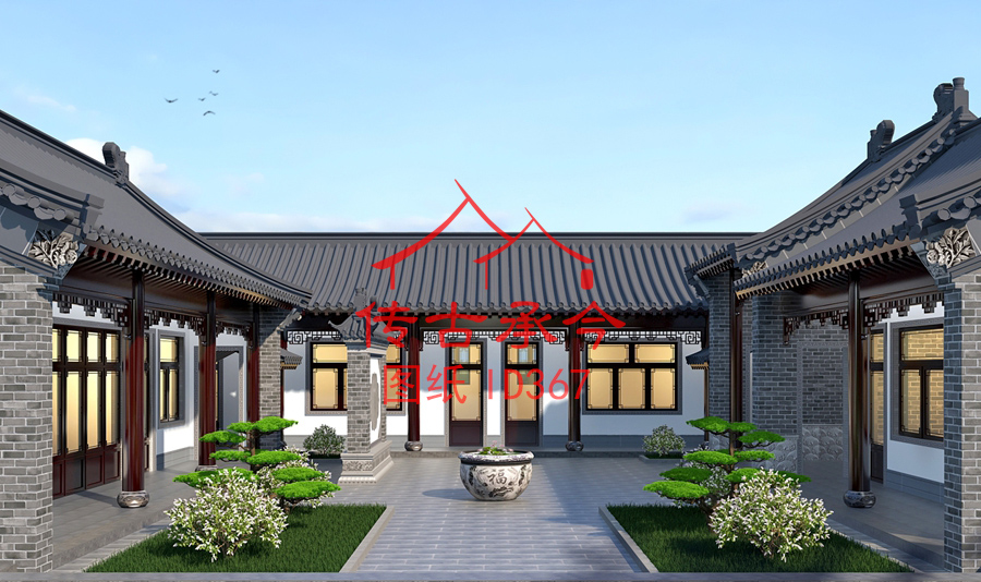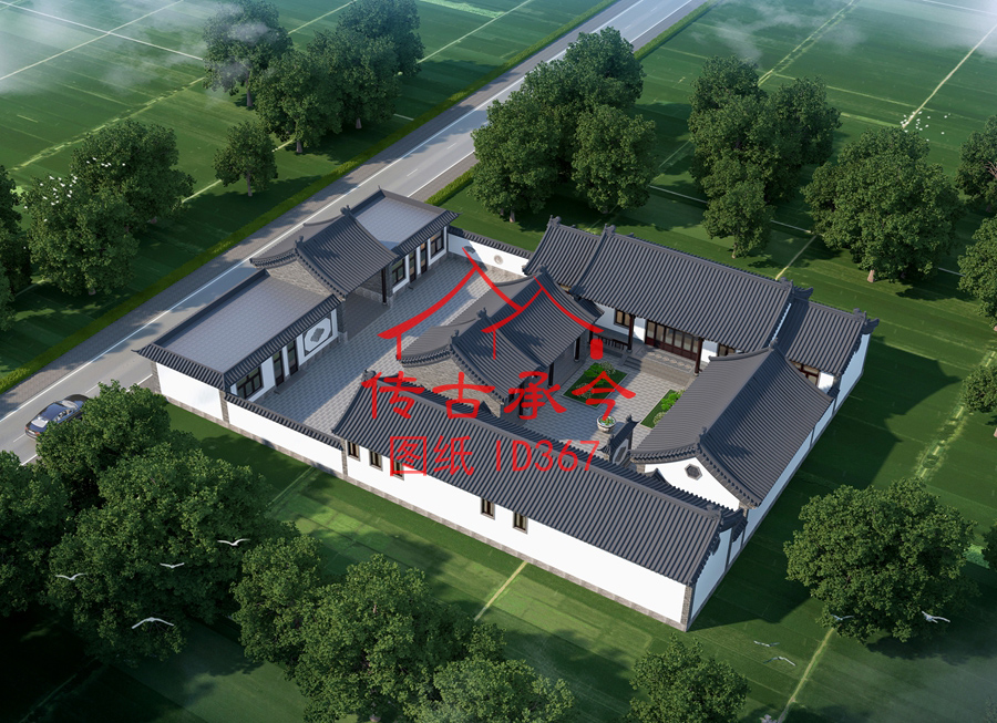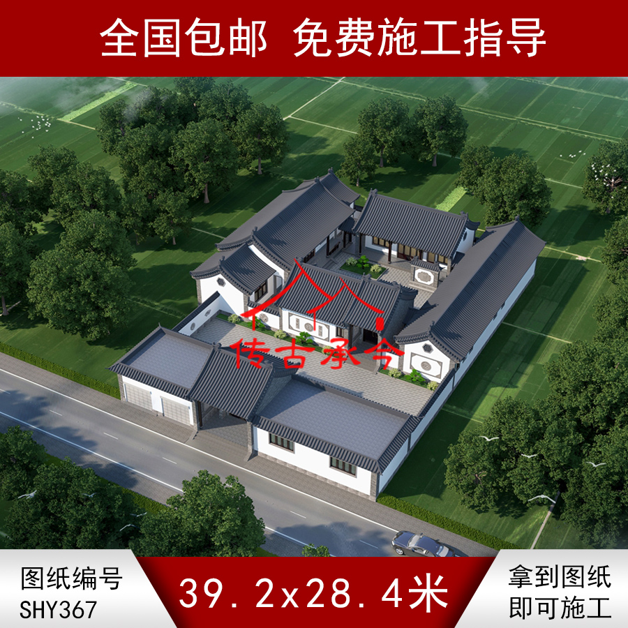 编号367:39.2*28.4米四合院全套施工图纸设计图纸 自建房图纸 提供材料及技术