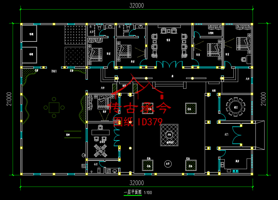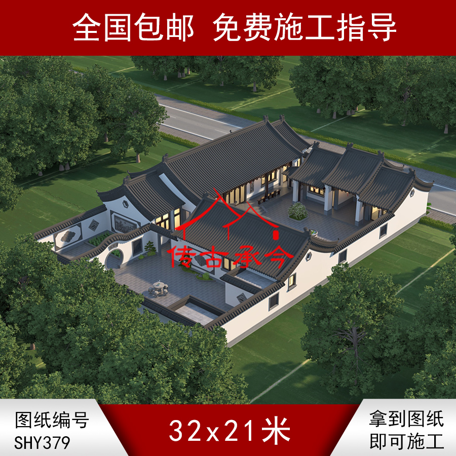 编号379:32*21米四合院全套施工图纸设计图纸 自建房图纸 提供材料及技术支持