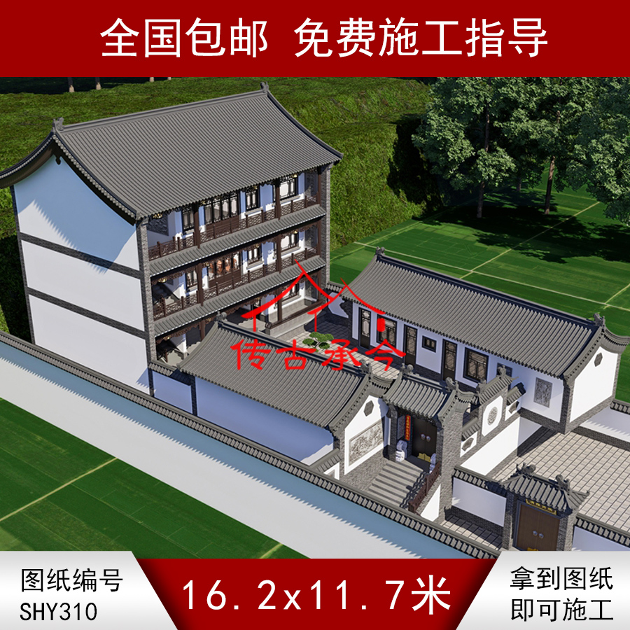 编号390:16.3*19.6米四合院全套施工图纸设计图纸 自建房图纸 提供材料及技术支持