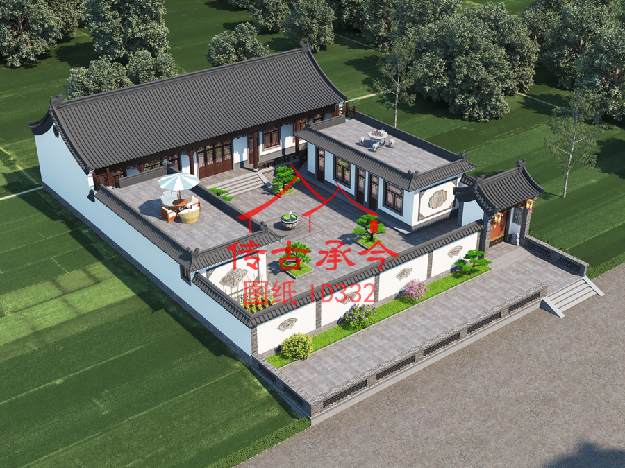 编号028:35.6*32.9米一进一层四合院全套图纸 自建房图纸 提供材料及技术支持