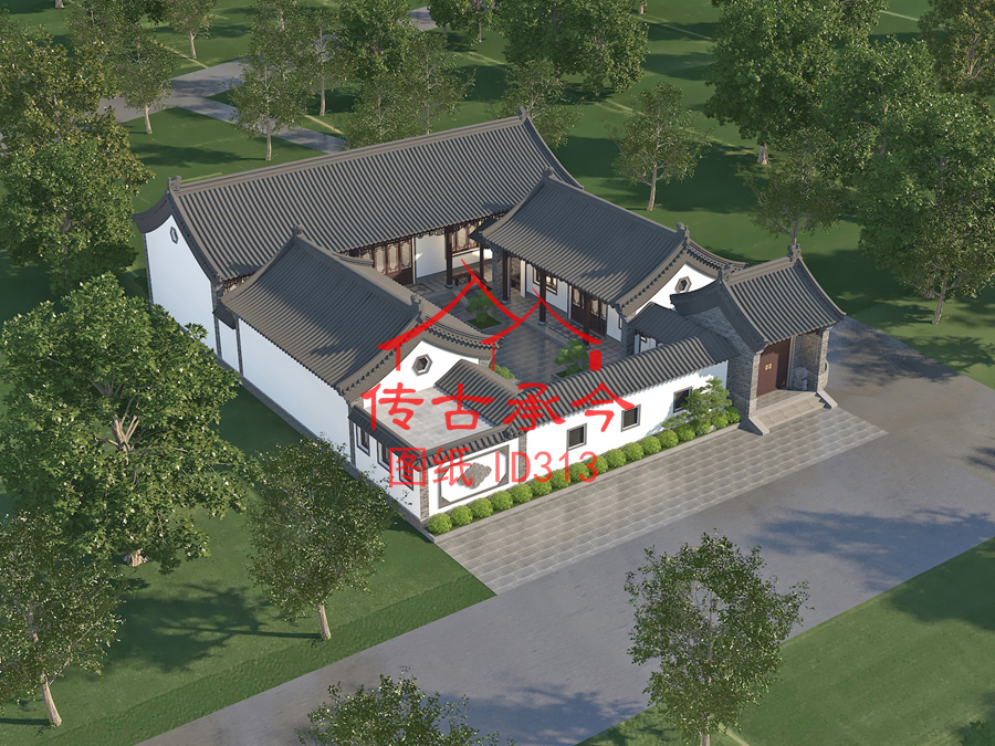 编号010:12.8*30.2米一层四合院全套施工图纸 自建房图纸 提供材料及技术支持