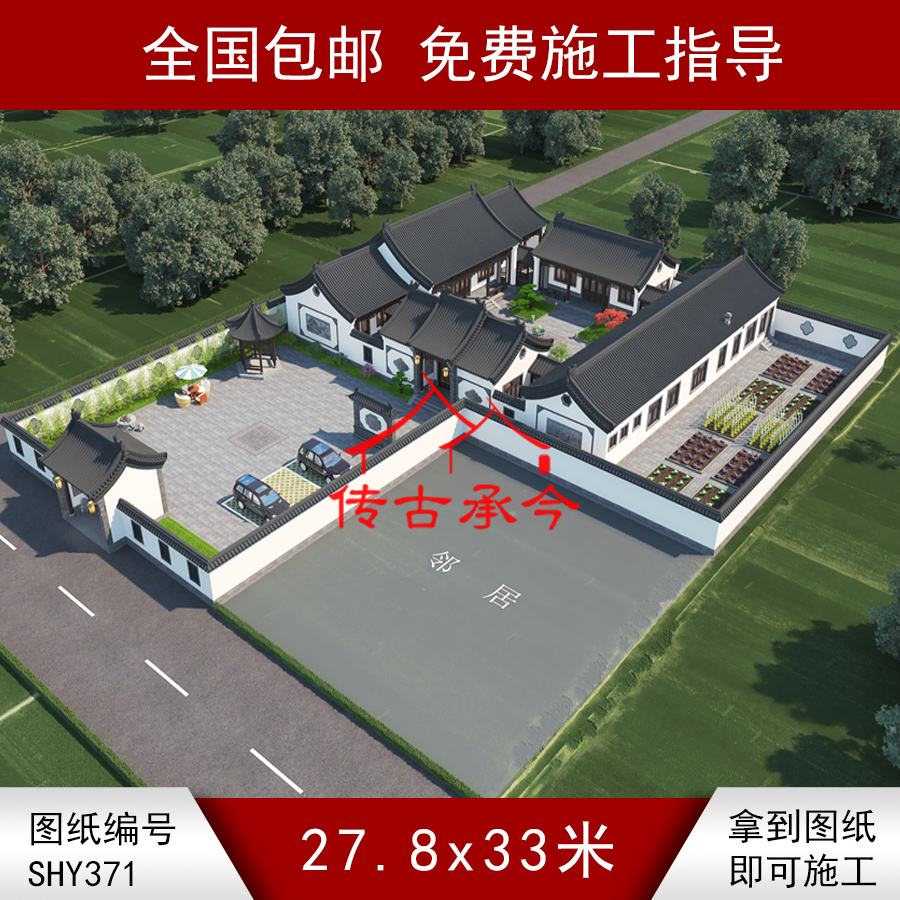 编号371:27.8*33米四合院全套施工图纸设计图纸 自建房图纸 提供材料及技术