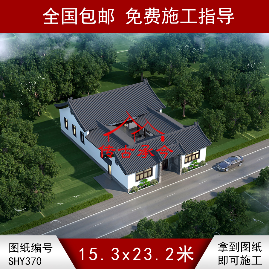 编号370:15.3*23.2米四合院全套施工图纸设计图纸 自建房图纸 提供材料及技术