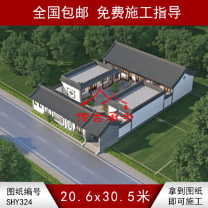 编号324:20.6*30.5米四合院全套施工图纸设计图纸 自建房图纸 提供材料及技术支持