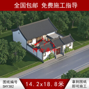 编号382:14.2*18.8米四合院全套施工图纸设计图纸 自建房图纸 提供材料及技术支持