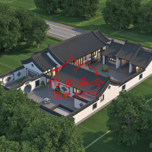 编号001生态园农家乐四合院图纸面宽36米,进深55米三进四合院全套施工图纸 自建房图纸 提供材料及技术支持