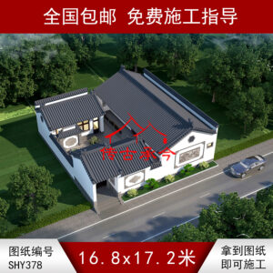 编号378:16.8*17.2米四合院全套施工图纸设计图纸 自建房图纸 提供材料及技术支持