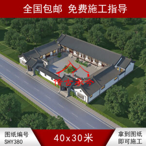 编号380:40*30米四合院全套施工图纸设计图纸 自建房图纸 提供材料及技术支持