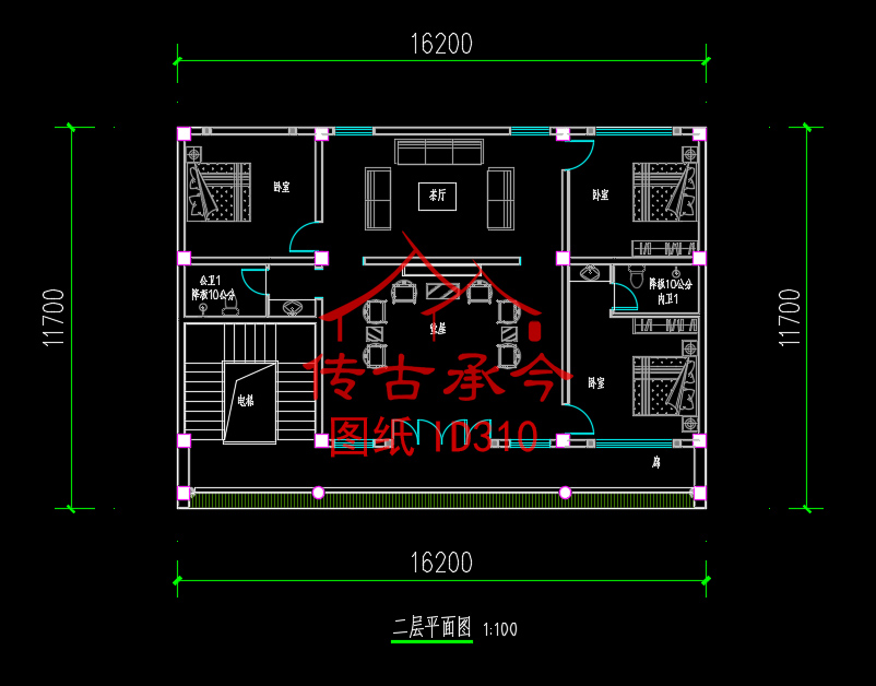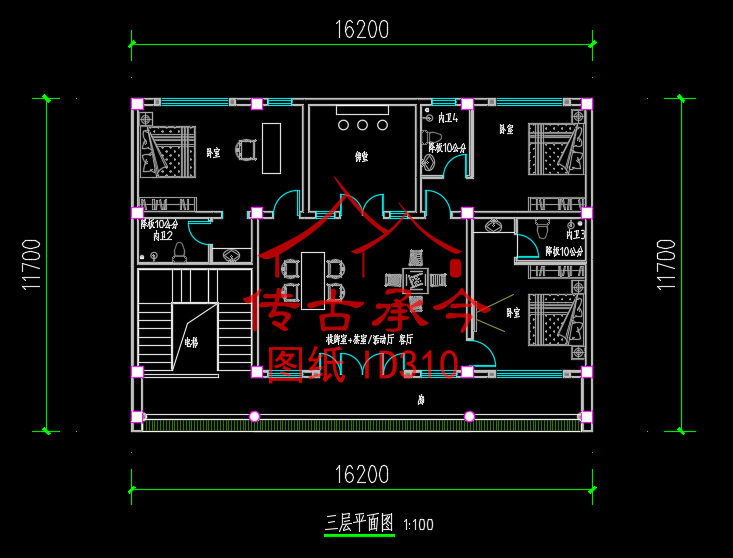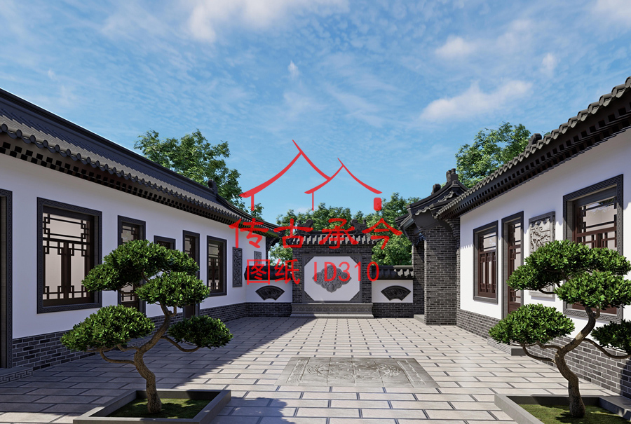 编号310:16.2*11.7米四合院全套施工图纸设计图纸 自建房图纸 提供材料及技术支持