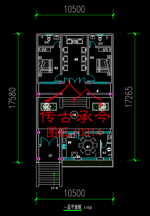 编号314:10.5*17.2米四合院全套施工图纸设计图纸 自建房图纸 提供材料及技术支持