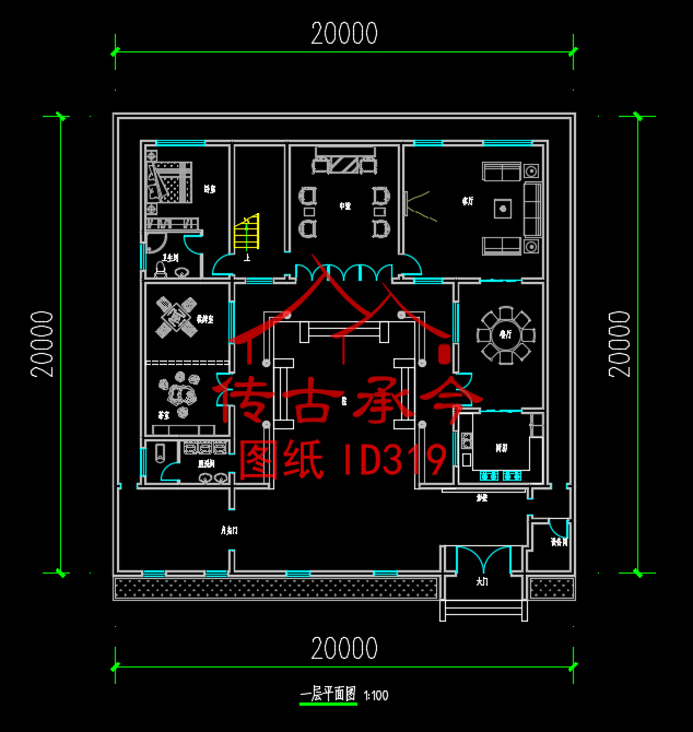 编号319:20*20米四合院全套施工图纸设计图纸 自建房图纸 提供材料及技术支持