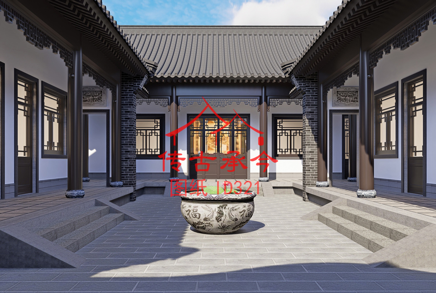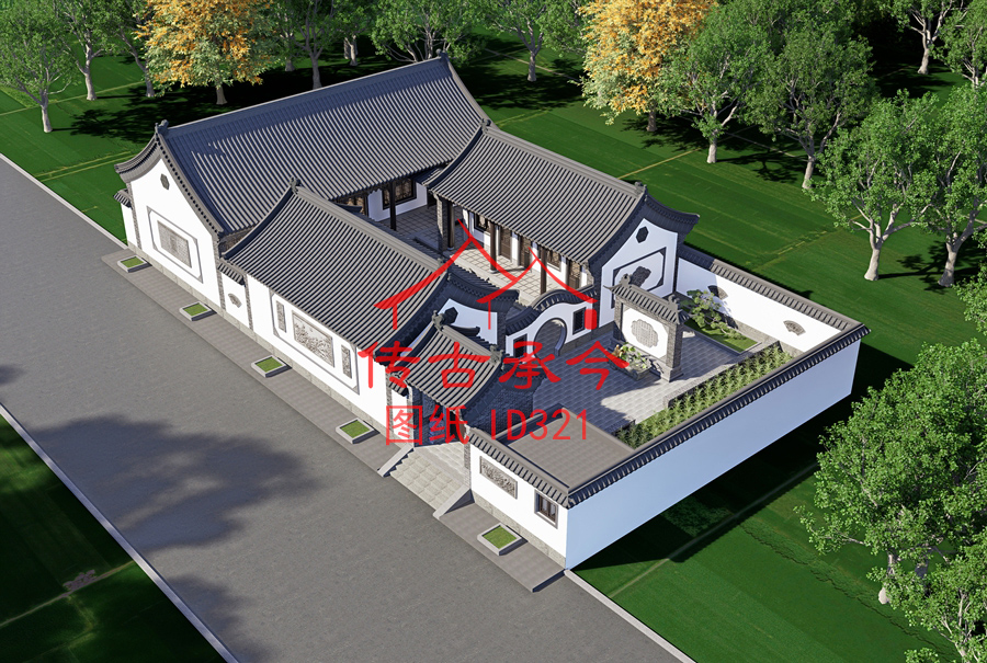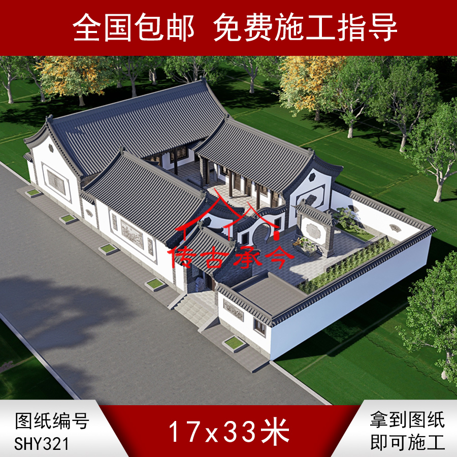 编号321:17*33米四合院全套施工图纸设计图纸 自建房图纸 提供材料及技术支持