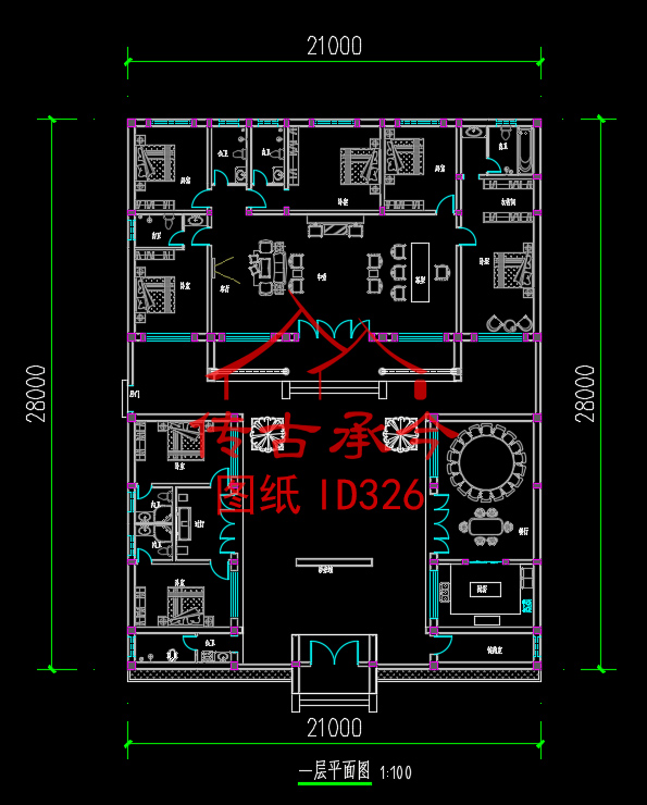 编号326:21*28米四合院全套施工图纸设计图纸 自建房图纸 提供材料及技术支持