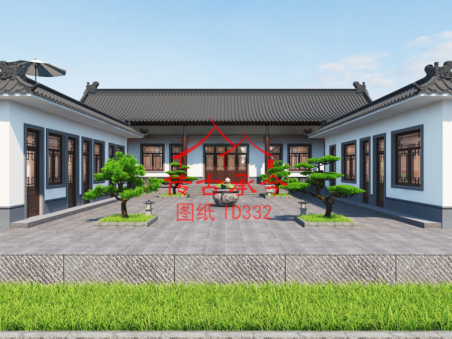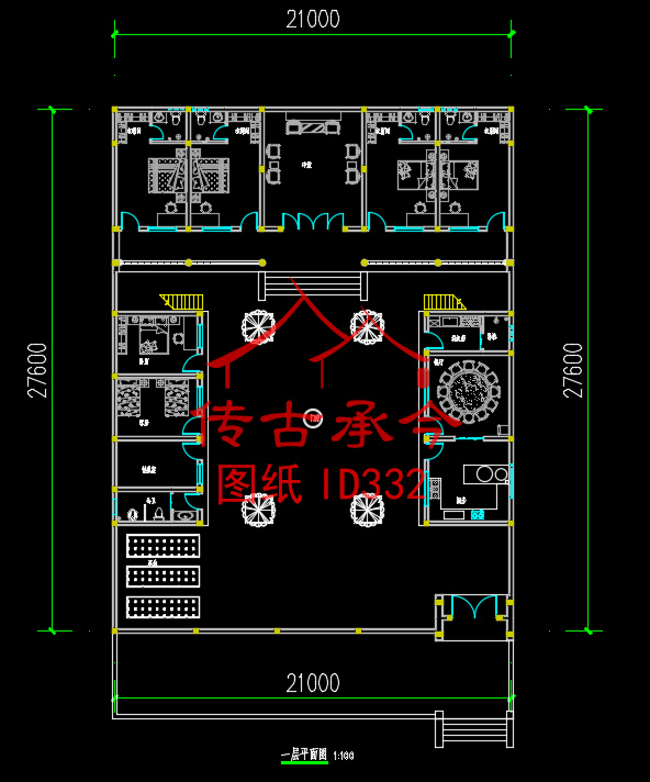 编号332:21*27.6米四合院全套施工图纸设计图纸 自建房图纸 提供材料及技术支持