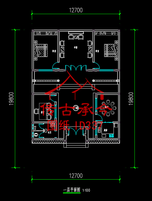 编号337:12.7*19.8米四合院全套施工图纸设计图纸 自建房图纸 提供材料及技术支持