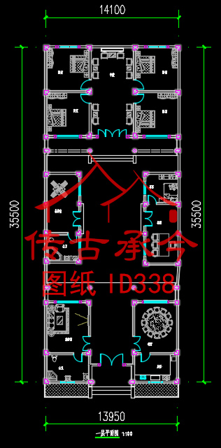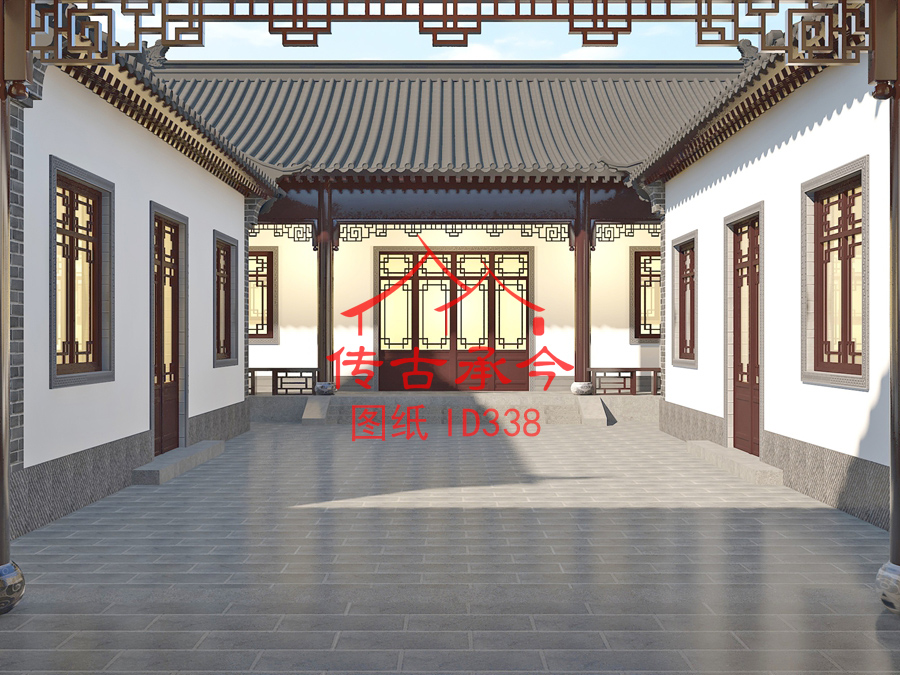 编号338:14.1*44.6米四合院全套施工图纸设计图纸 自建房图纸 提供材料及技术支持