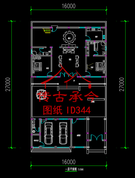 编号344:16*27米四合院全套施工图纸设计图纸 自建房图纸 提供材料及技术支持
