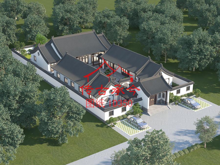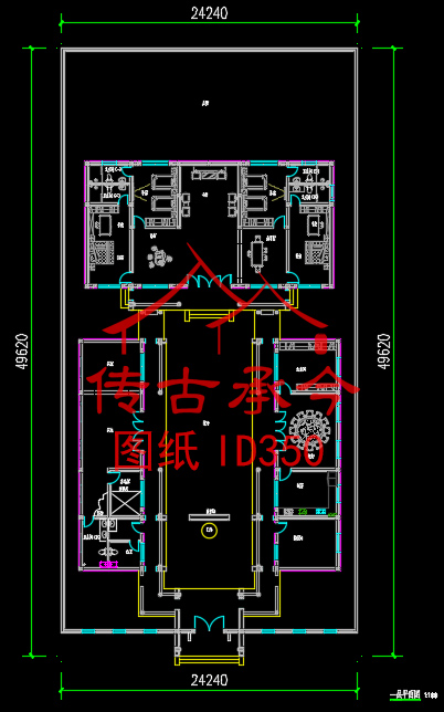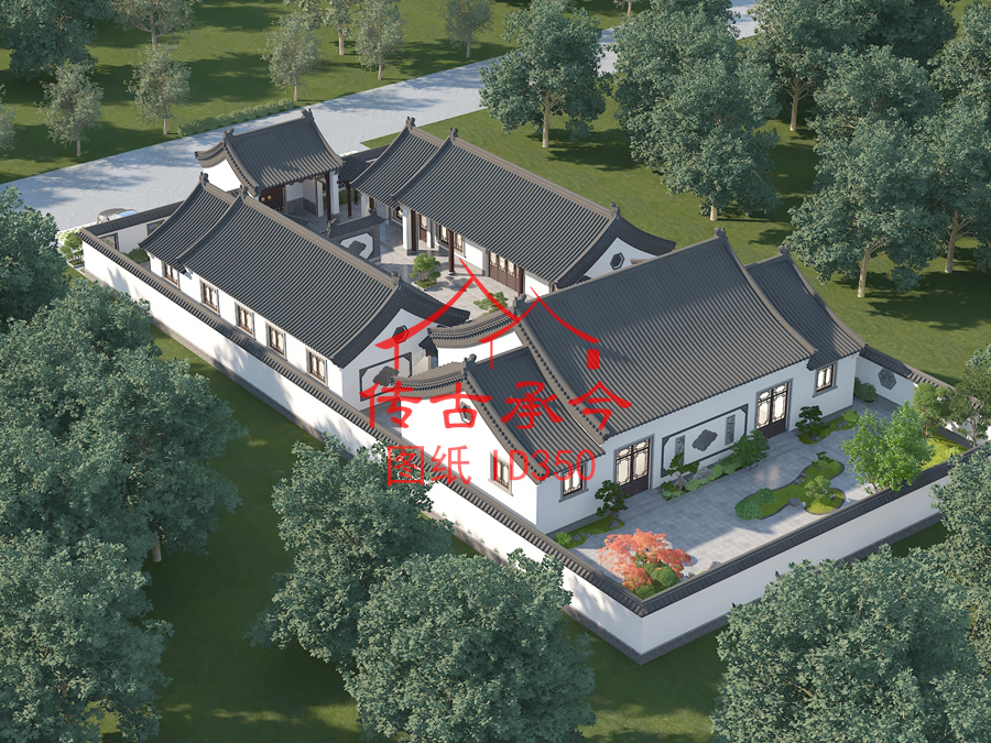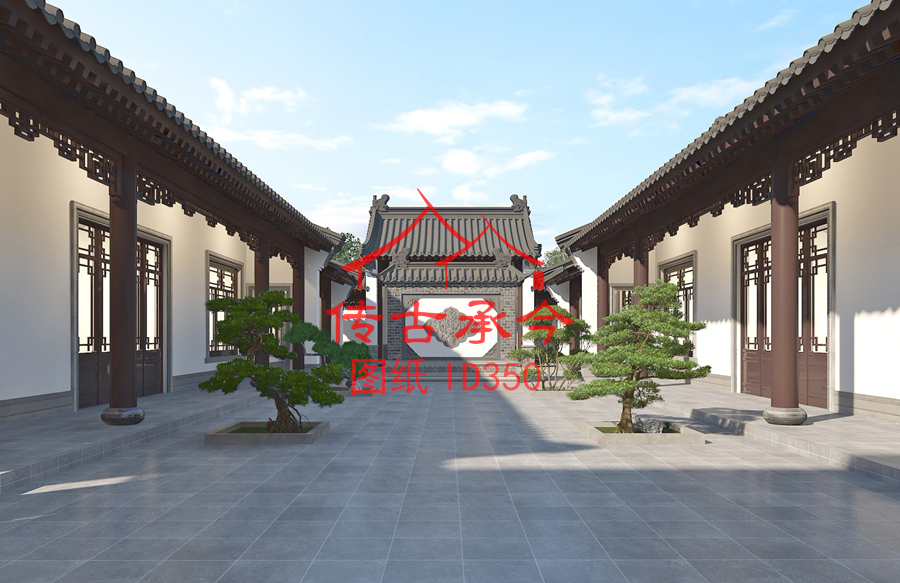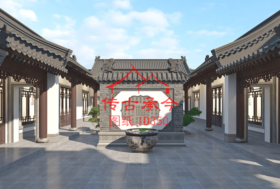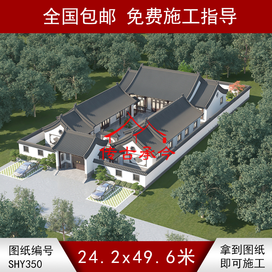 编号350:24.2*49.6米四合院全套施工图纸设计图纸 自建房图纸 提供材料及技术支持