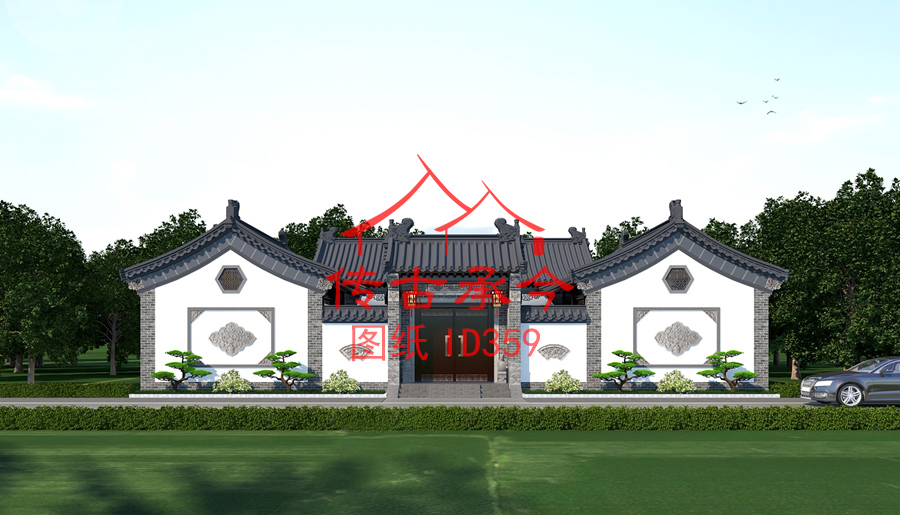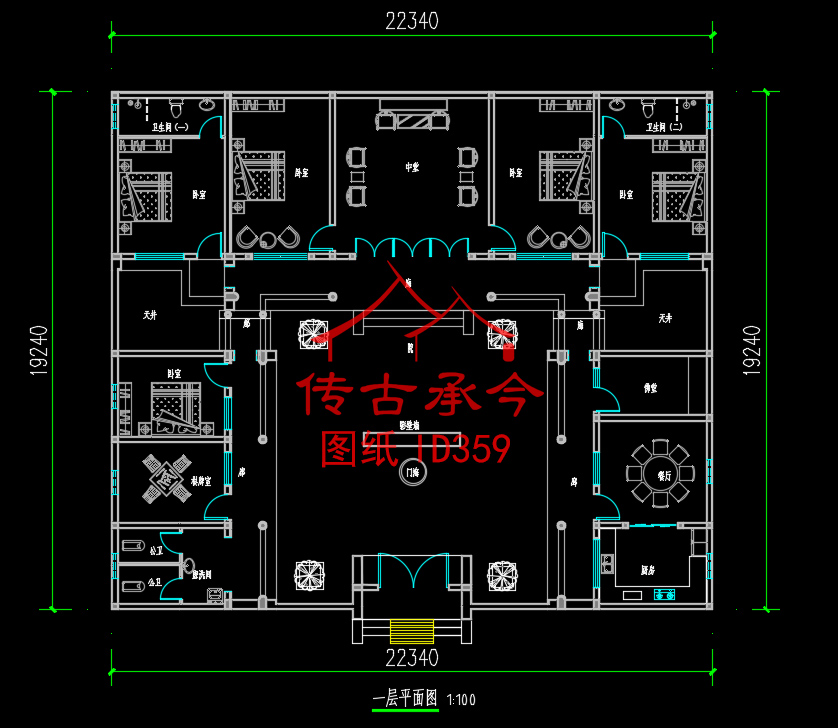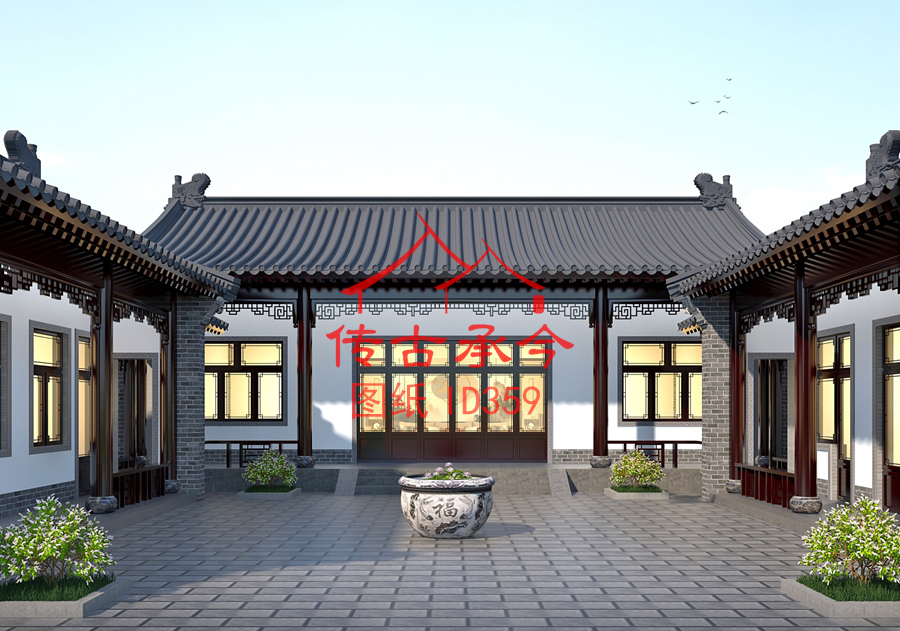 编号359:22.3*19.2米四合院全套施工图纸设计图纸 自建房图纸 提供材料及技术