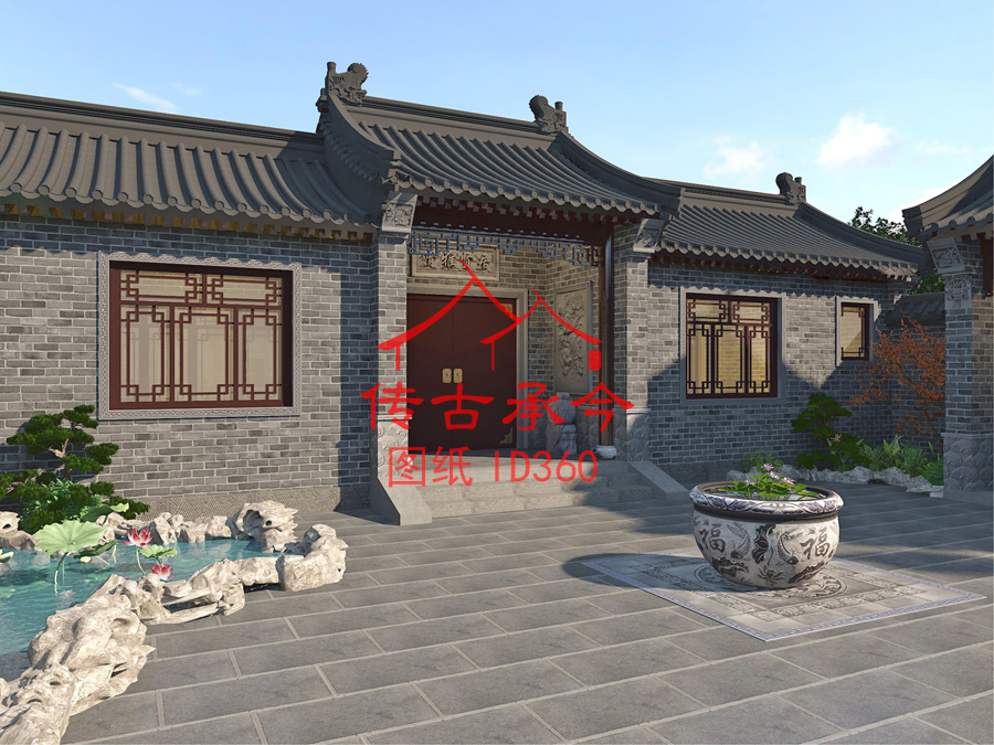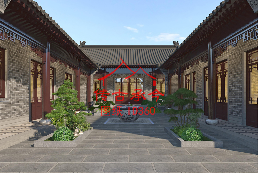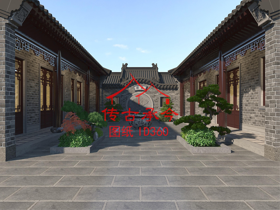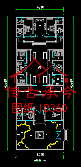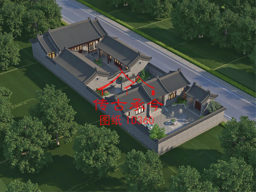 编号360:16.2*45.2米四合院全套施工图纸设计图纸 自建房图纸 提供材料及技术