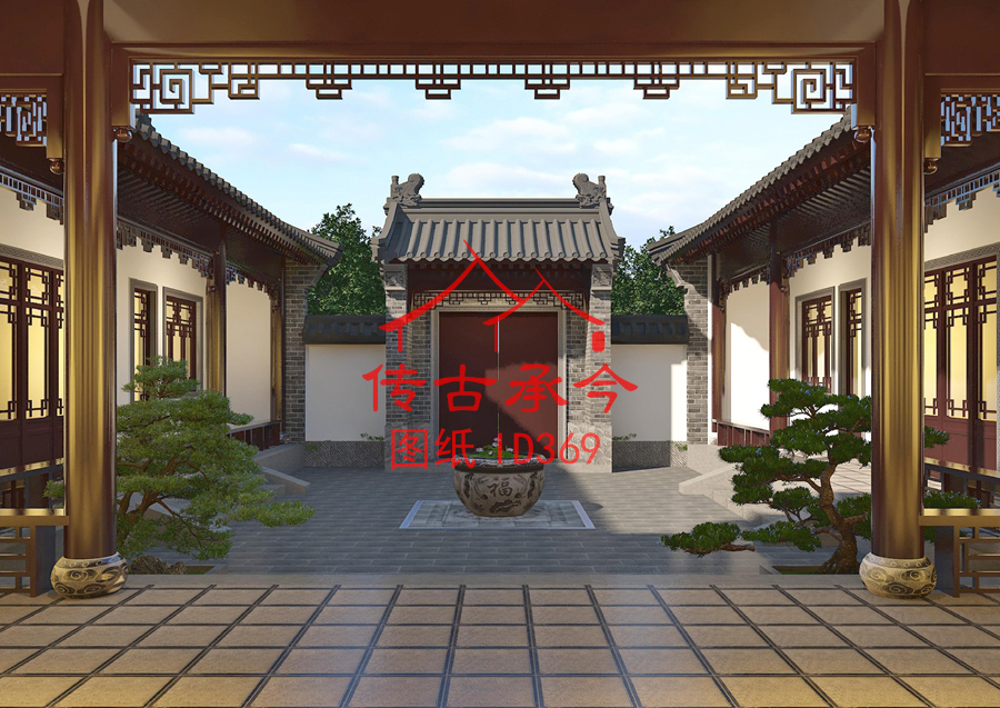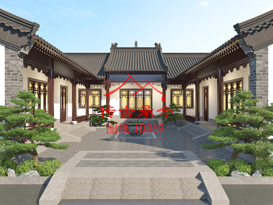 编号369:20.2*21.2米四合院全套施工图纸设计图纸 自建房图纸 提供材料及技术