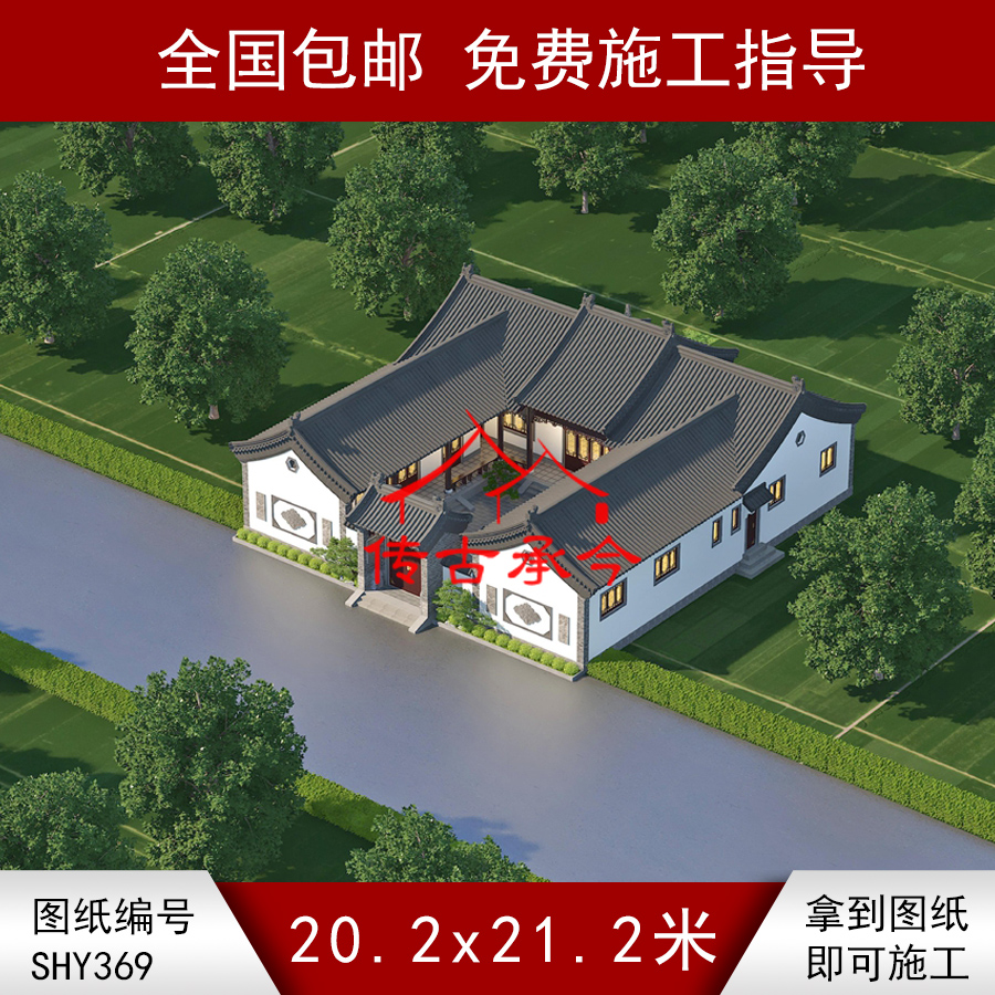 成为第一个“编号369:20.2*21.2米四合院全套施工图纸设计图纸 自建房图纸 提供材料及技术” 的评价者