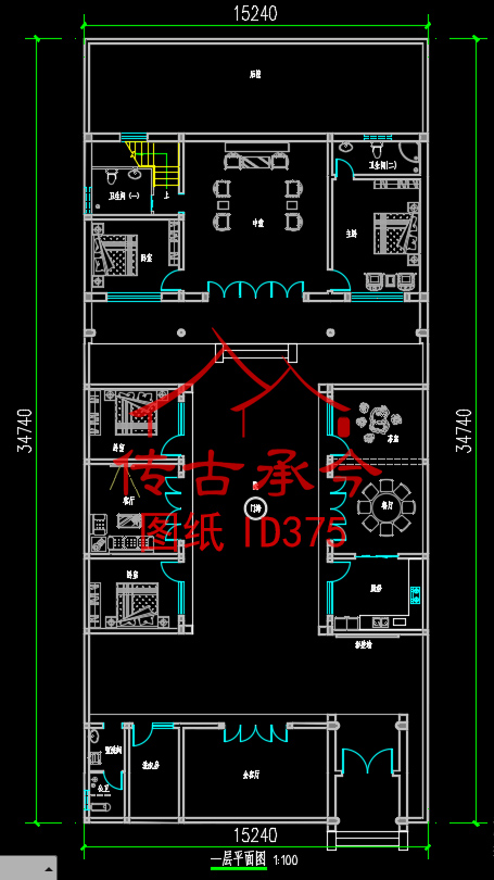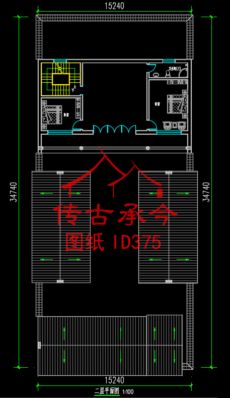 编号375:15.2*34.7米四合院全套施工图纸设计图纸 自建房图纸 提供材料及技术支持