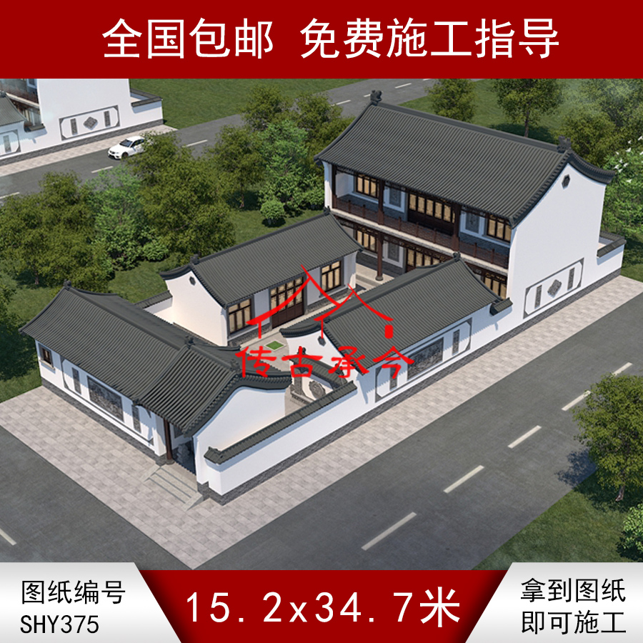 成为第一个“编号375:15.2*34.7米四合院全套施工图纸设计图纸 自建房图纸 提供材料及技术支持” 的评价者