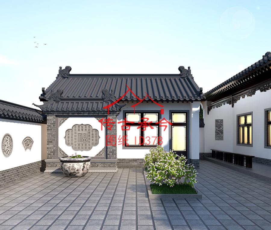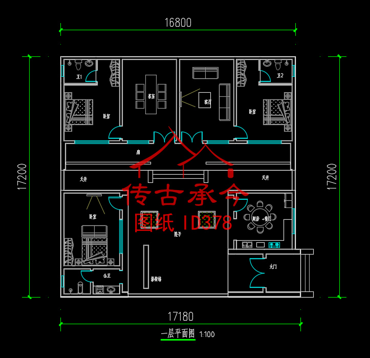 编号378:16.8*17.2米四合院全套施工图纸设计图纸 自建房图纸 提供材料及技术支持