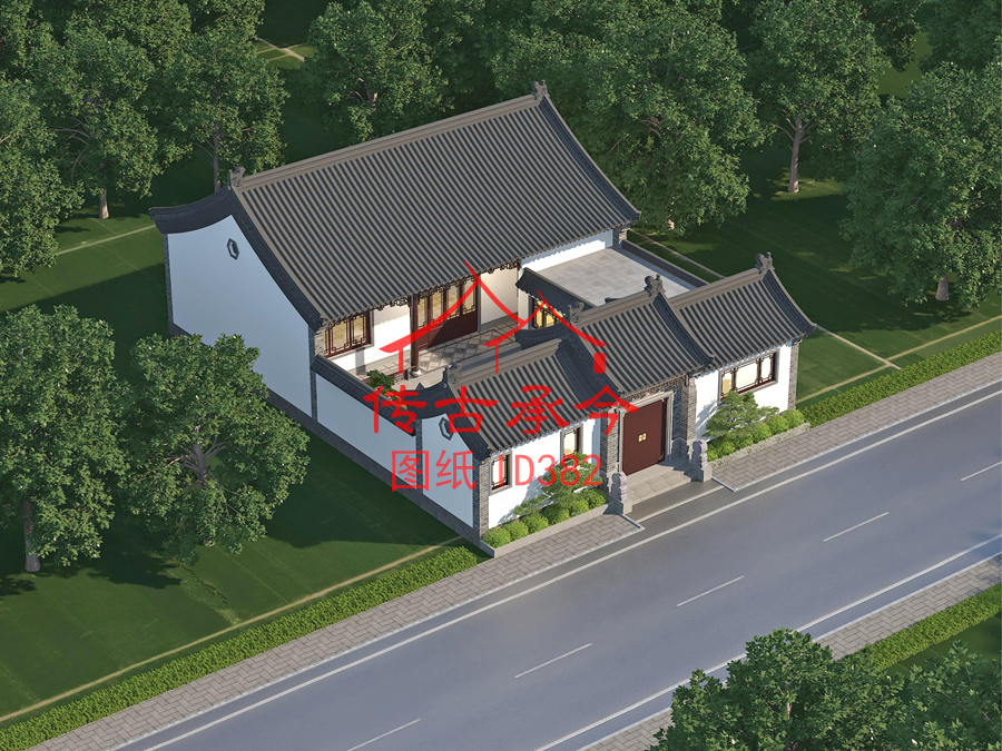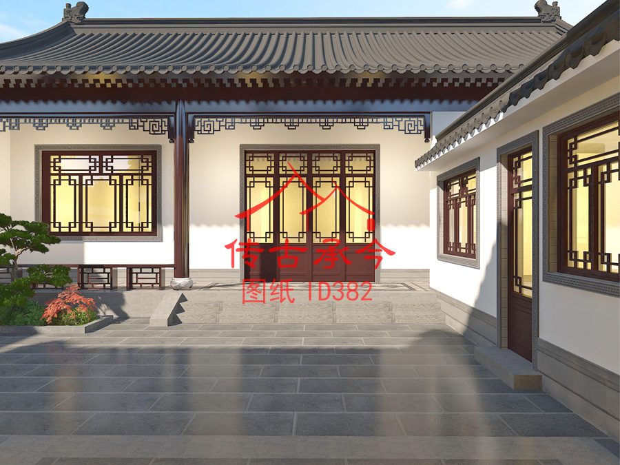 编号382:14.2*18.8米四合院全套施工图纸设计图纸 自建房图纸 提供材料及技术支持