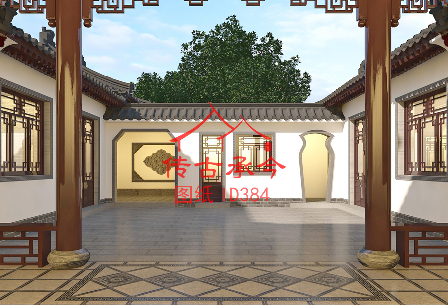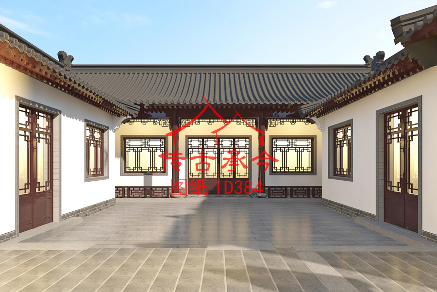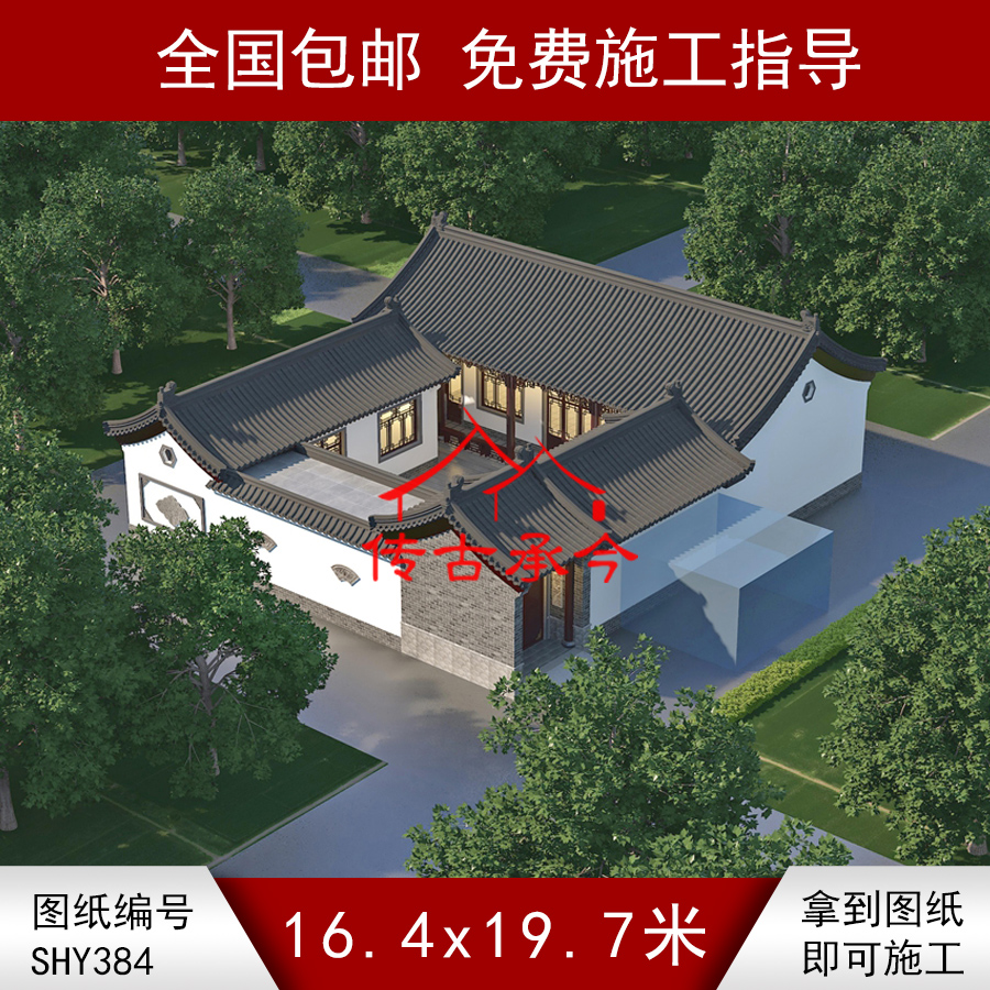 编号384:16.4*19.7米四合院全套施工图纸设计图纸 自建房图纸 提供材料及技术支持