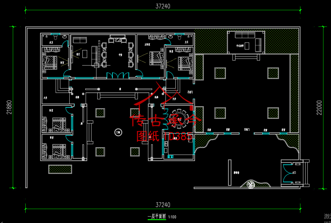 编号385:37.2*22米四合院全套施工图纸设计图纸 自建房图纸 提供材料及技术支持