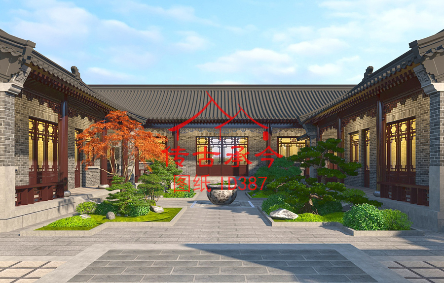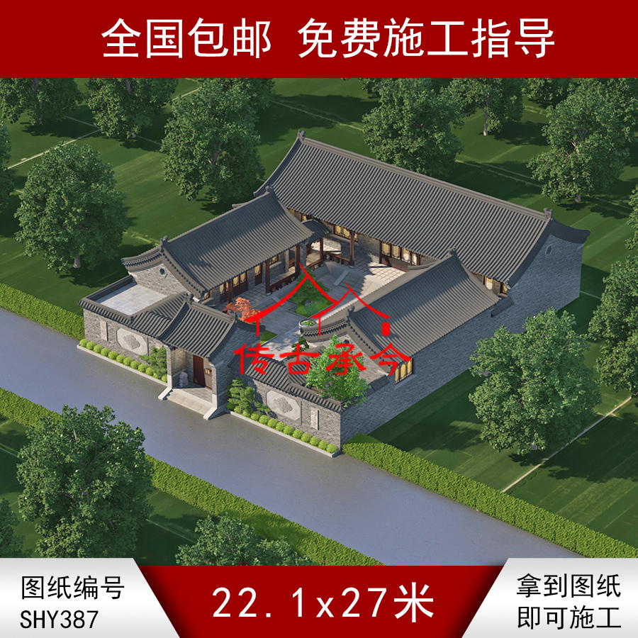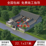 编号387:22.1*27米四合院全套施工图纸设计图纸 自建房图纸 提供材料及技术支持