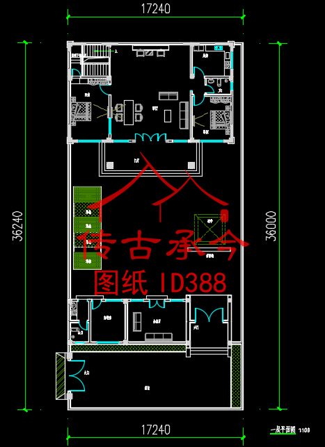 编号388:17.2*36米四合院全套施工图纸设计图纸 自建房图纸 提供材料及技术支持