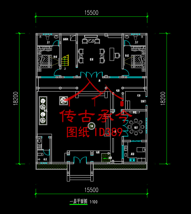 编号389:15.5*18.2米四合院全套施工图纸设计图纸 自建房图纸 提供材料及技术支持