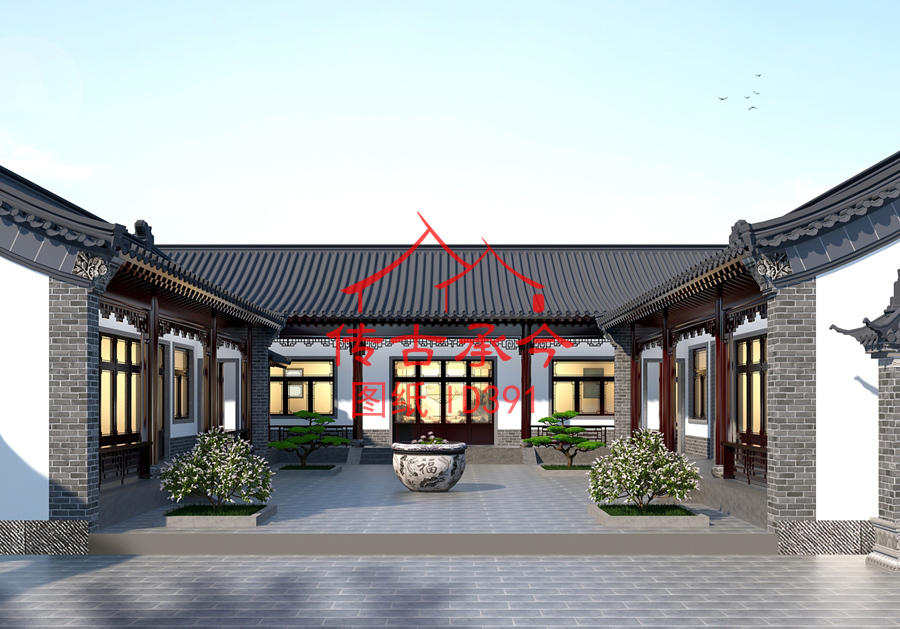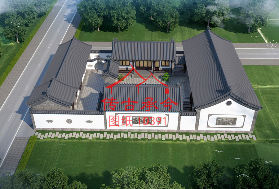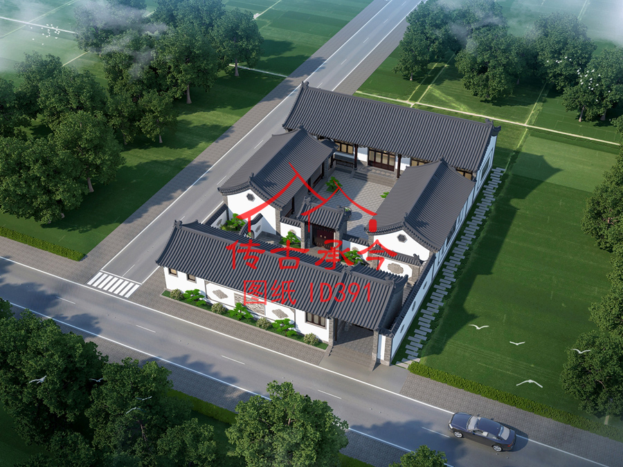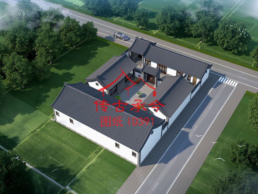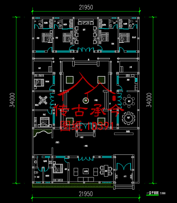 编号391:21.9*34米四合院全套施工图纸设计图纸 自建房图纸 提供材料及技术支持