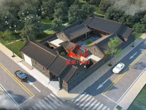 新中式大型四合院效果图 大型四合院效果图鸟瞰图 新中式白墙灰瓦效果图 京派垂花门月洞门效果图 白墙灰瓦院子效果图
