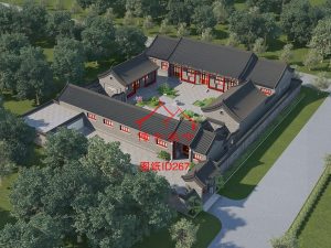 新中式大型四合院效果图 大型四合院效果图鸟瞰图 新中式白墙灰瓦效果图 京派垂花门月洞门效果图 白墙灰瓦院子效果图